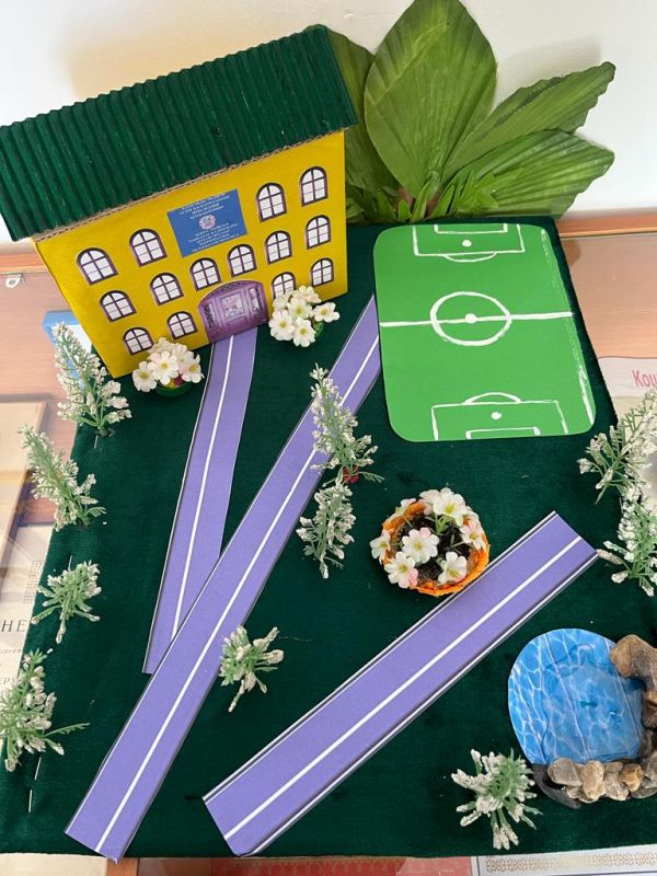 Экологиялық тәрбиелеуде "Менің қиялымдағы мектеп" тақырыбына 8 орыс сыныбының оқушысы Рахим Рамазан түрлі қалдық материялдардан мектеп макетін жасады.