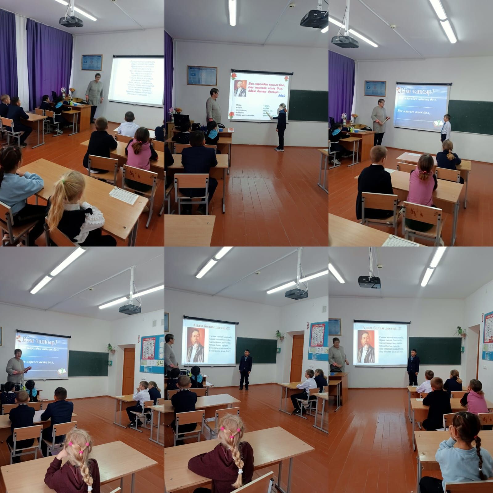 Пушкин негізгі орта мектебінде Абай Құнанбаевтың "Бес нәрсеге асық бол!" атты сынып сағаты 2-4 "А" сынып оқушылары мен өткізілді.