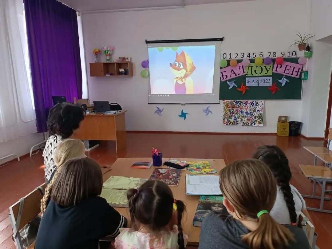 “Балдәурен” жазғы сауықтыру алаңында “Үш тілді білдік кітаптар әлемінде” ертегілер оқыды. Мақсаты: Оқушыларды мемлекеттік тілді сүюге, өзге тілді құрметтеуге тәрбиелеу.