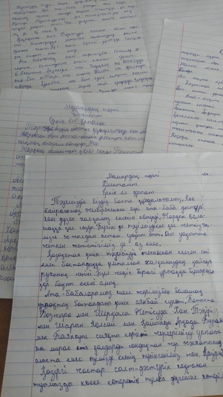 Пушкин НОМ-де "Ешқашан соғыс болмасын!" тақырыбында оқушылар шығарма жазды.