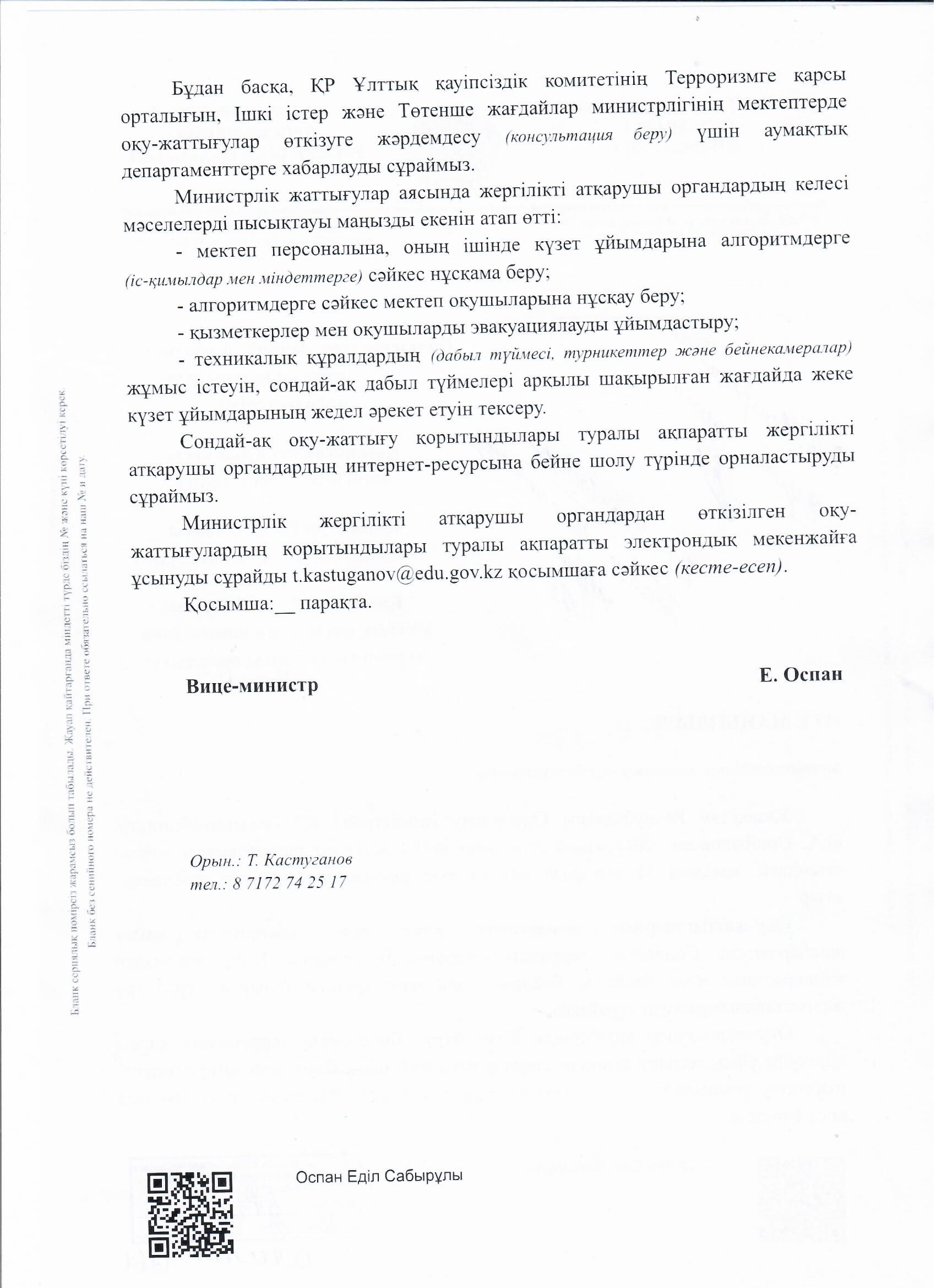 12 мамырда сағат 10:00-де терроризмге қарсы қорғауға бағытталған ілімдер өтті. Оларға оқушылар, білім беру ұйымының педагогтары мен қызметкерлері де қатысты.