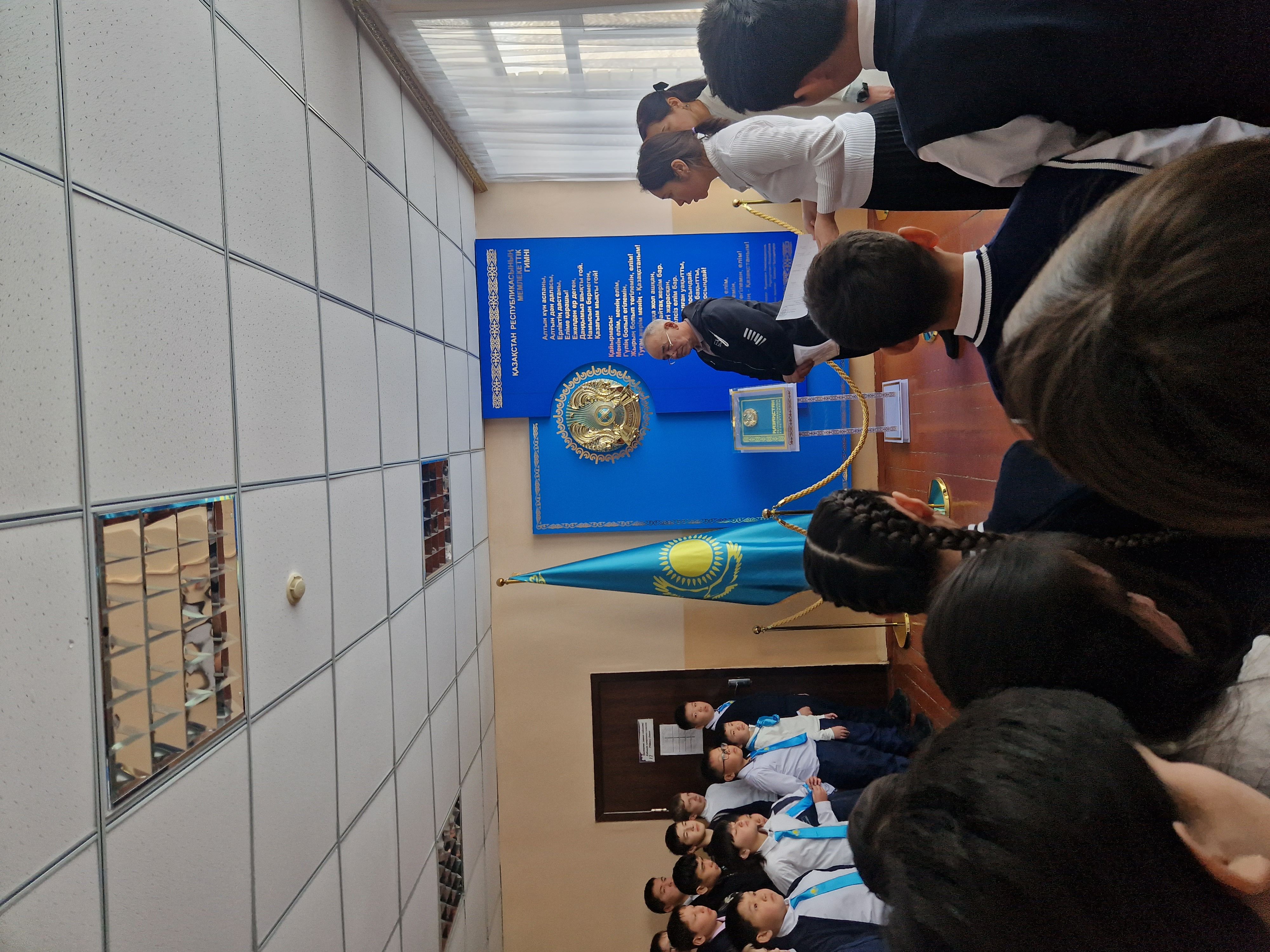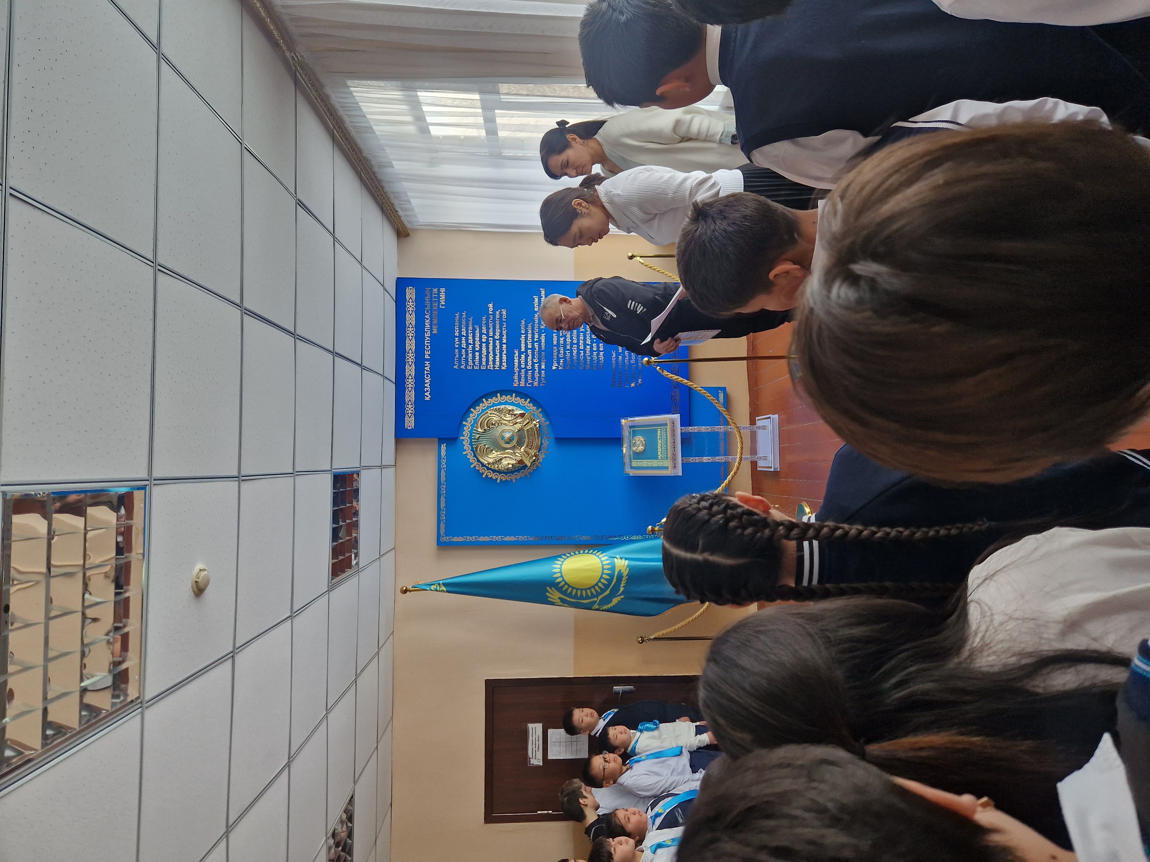 Саптық жиын өткізіліп, мектеп ұжымы және оқушылар жоспармен таныстырылды. Мектебіміздің екінші қабатында стенд безендірілді