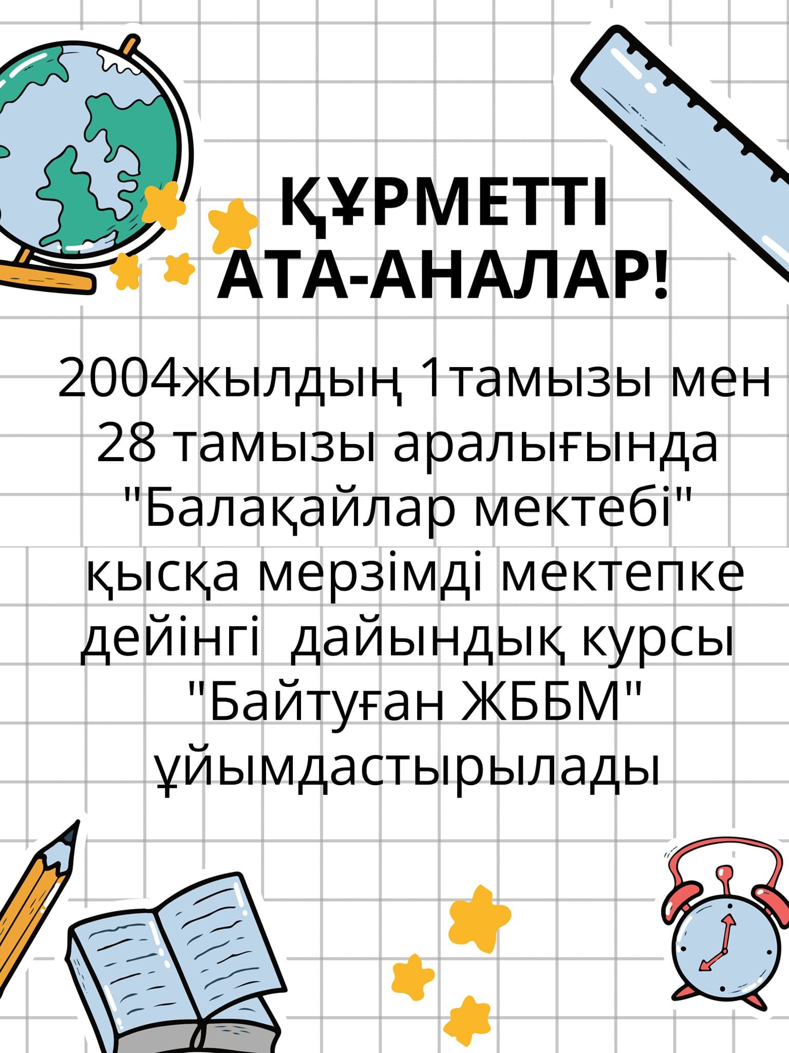 Біздің мектепте 2024 жылдың 1 тамызынан бастап болашақ бірінші сынып оқушылары үшін "Балақайлар мектебі" жұмысын бастайды.