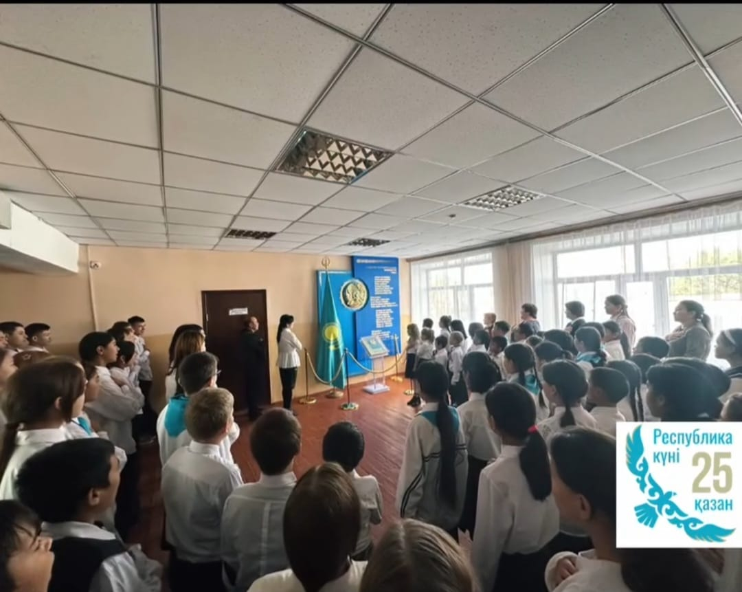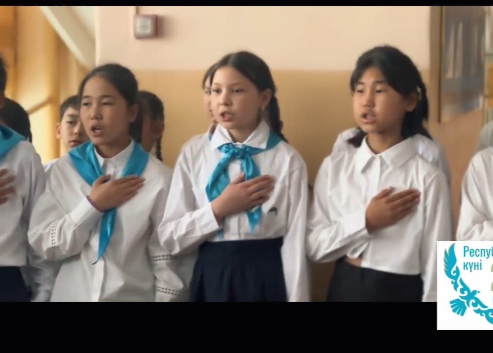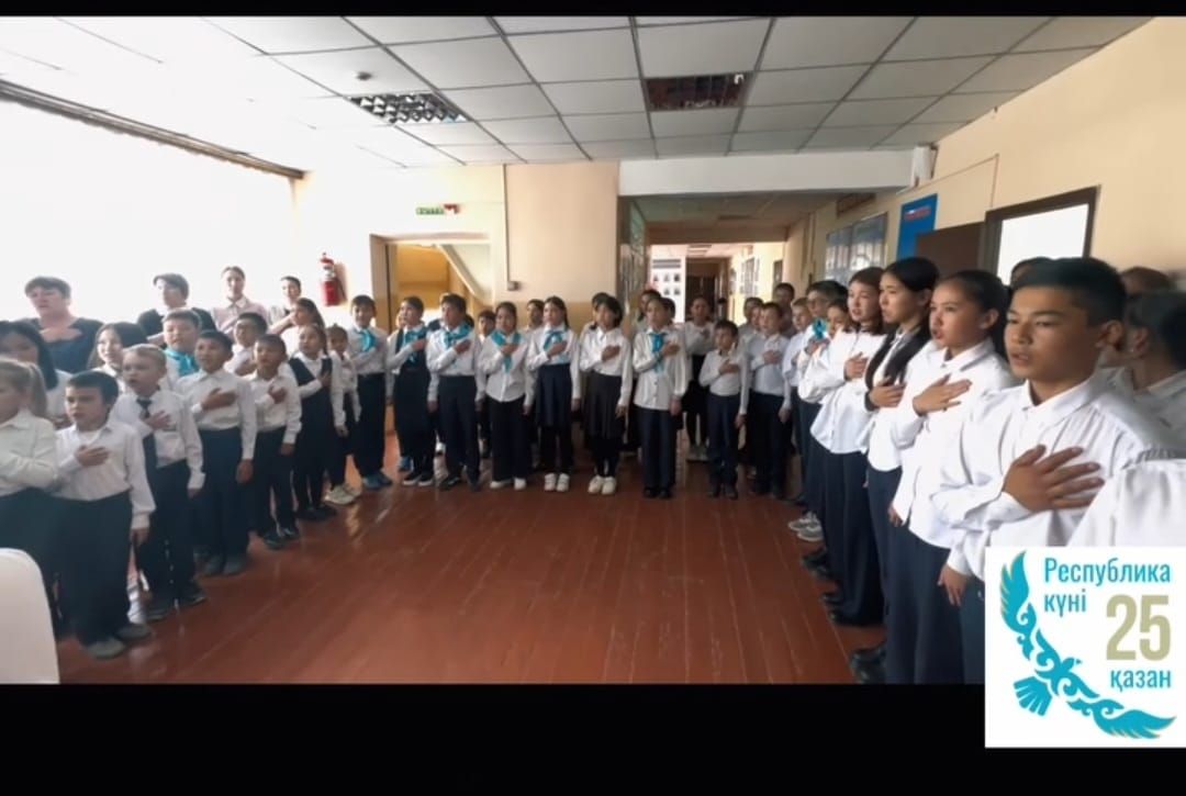 23.10.2023 г. "Байтуганская ОШ" в 12:00 участвовала в челлендже ко Дню Республики исполение гимна на линейке.