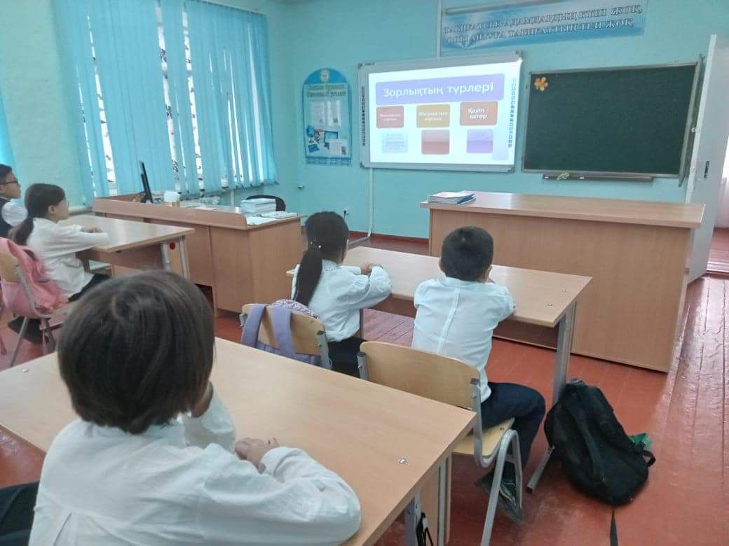В школе 15.11.2023 года в рамках республиканской информационной акции "Детство без жестокости и насилия" среди 5-9 классов проведена разъяснительная работа по мерам профилактики жесто…