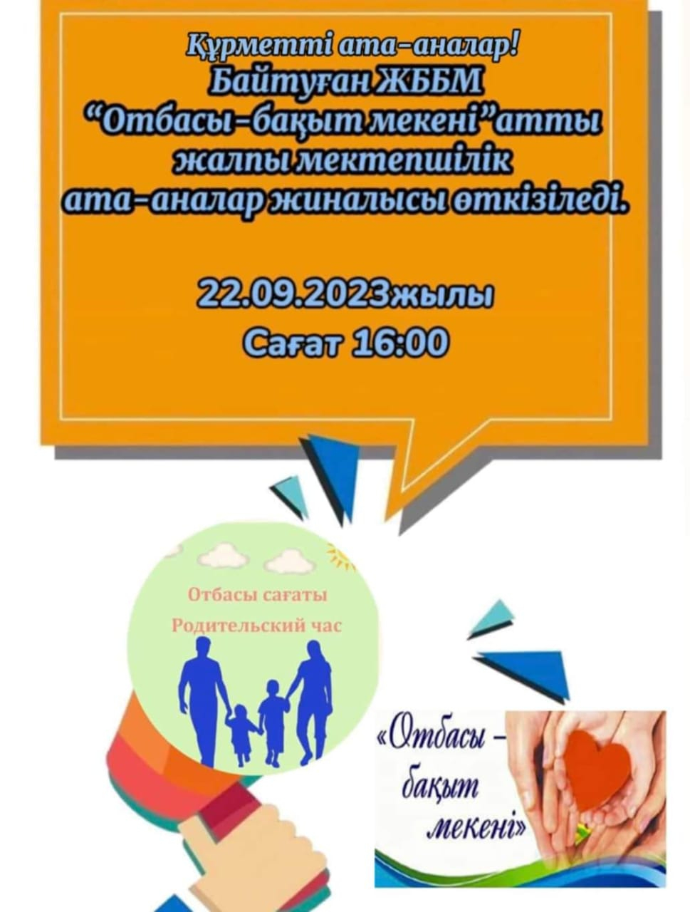 22.09.2023 жылы Байтуған ЖББМ-де "Отбасы бақыт мекені" жалпымектептік ата-аналар жиналысы өтті . Мектеп директоры А.А. Кисиков Телеграмдағы мектеп ата-аналар чатының маңыздылығы, сондай-ақ…