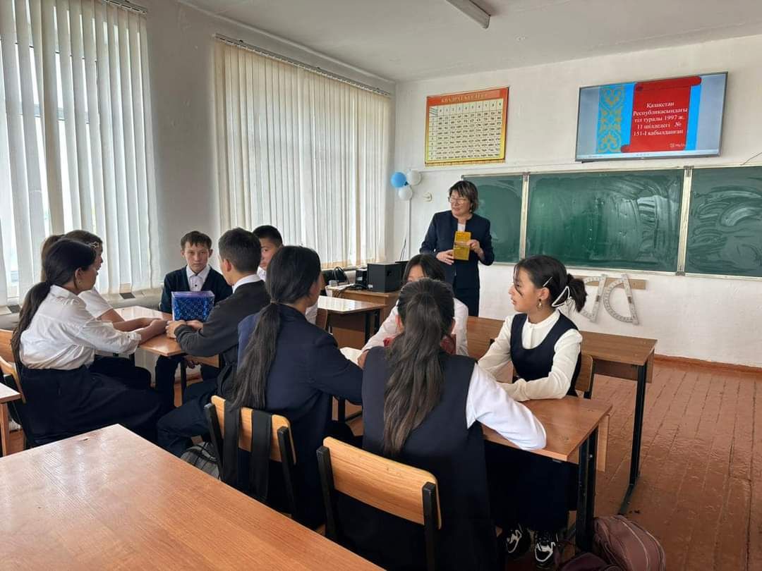 В Байтуганской ОШ 12.09.2023 года проведена разъяснительная работа по профилактике детского дорожно-транспортного травматизма среди 5-9 классов с участием сельского инспектора Жанабылова Д. К.