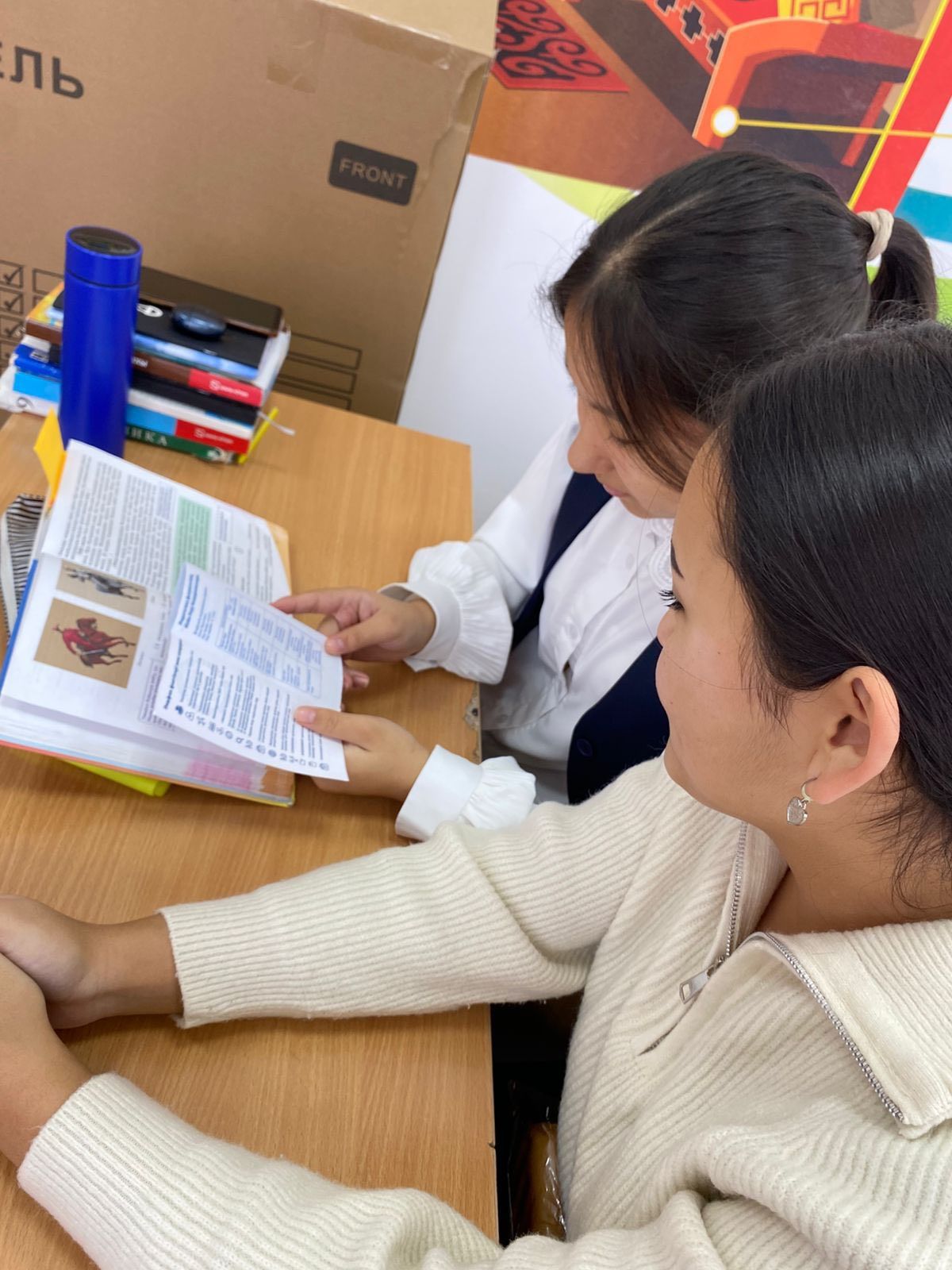 М.Дулатұлы атындағы ЖББМ " Кітап оқитын ұлт" жобасы аясында әр сынып үзілісте кітапханаға келіп, жоба бойынша оқып жатқан кітаптары туралы айтып, қай бетіңде оқып болғанын айтып береді.