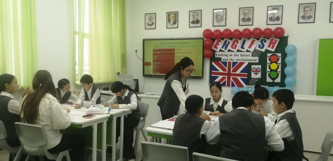 М. Дулатұлы атындағы ЖББ мектебінде "Жыл мұғалімі" байқауы аясында ағылшын тілі пәнінің мұғалімі Амантай Н. 7-сыныпта "Looking at the feature and the environment" тақырыбында ашы…