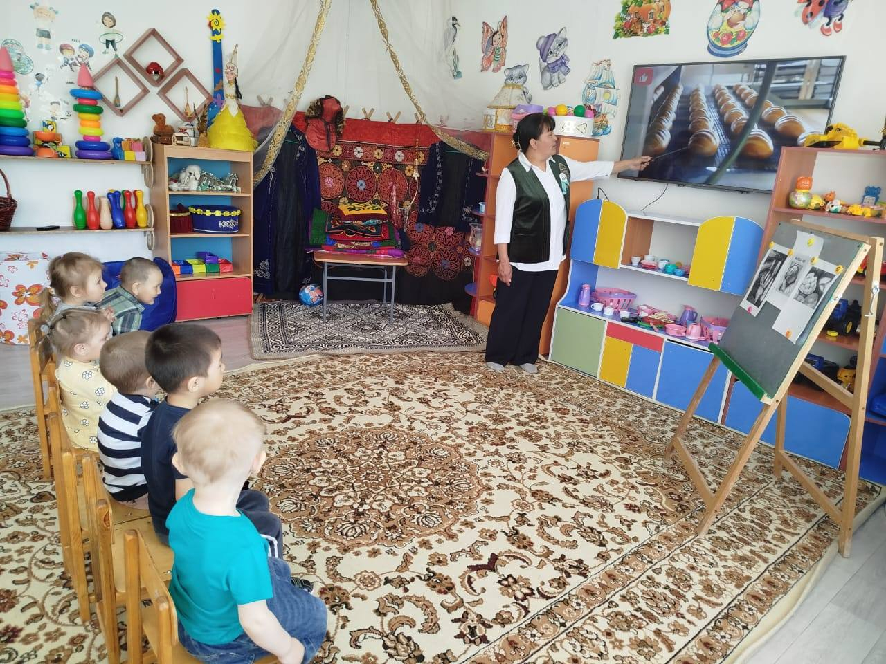 М. Дулатұлы атандағы ЖББМ жанындағы «Айгөлек» шағын орталығында консультациялық пункт бойынша «Нан қайдан келеді?» тақырыбында қазақ тілі маманы А.Б. Сабитаева балаларға арна…