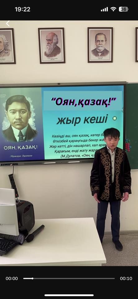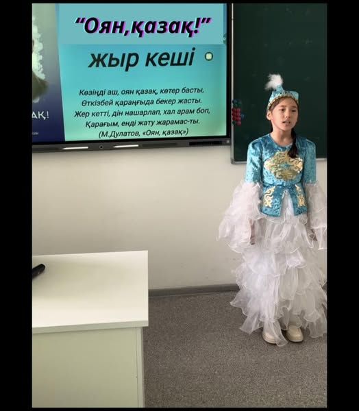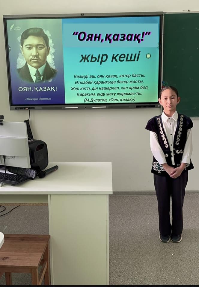 Мектебімізде Міржақып Дулатұлының туғанына 140 жыл толуына орай «Оян,қазақ!» атты жыр кеші өтті. Оқушылар өлеңдерін мәнерлеп жатқа оқыды. Жеңімпаздар мақтау қағазымен марапатталды.