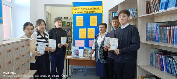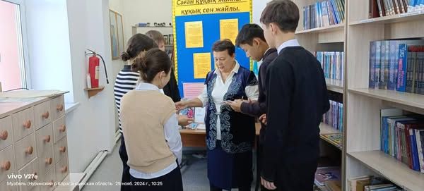 "Дүниежүзілік балаларды қорғау күні:балаларға арналған өмір" республикалық онкүндігі аясында М. Дулатұлы атындағы ЖББ мектеп кітапханасында "Саған құқық жайлы - құқық сен жайлы"…