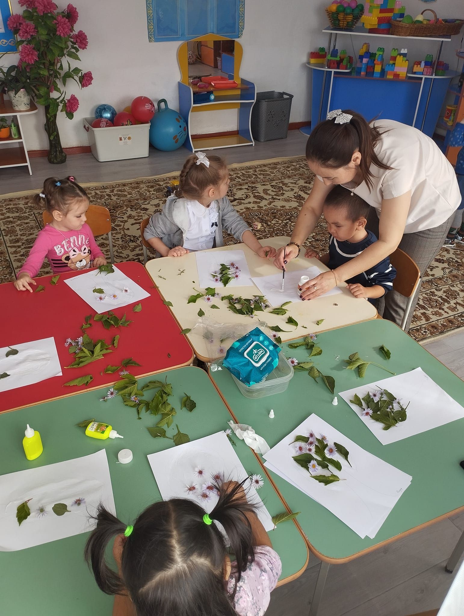 М. Дулатұлы атындағы ЖББМ жанындағы «Айгөлек» шағын орталығында «Сиқырлы ағаш» тақырыбы бойынша тәрбиеленушілерге қураған жапырақтар, жасыл жапырақтармен және гүлдермен жұмыс…