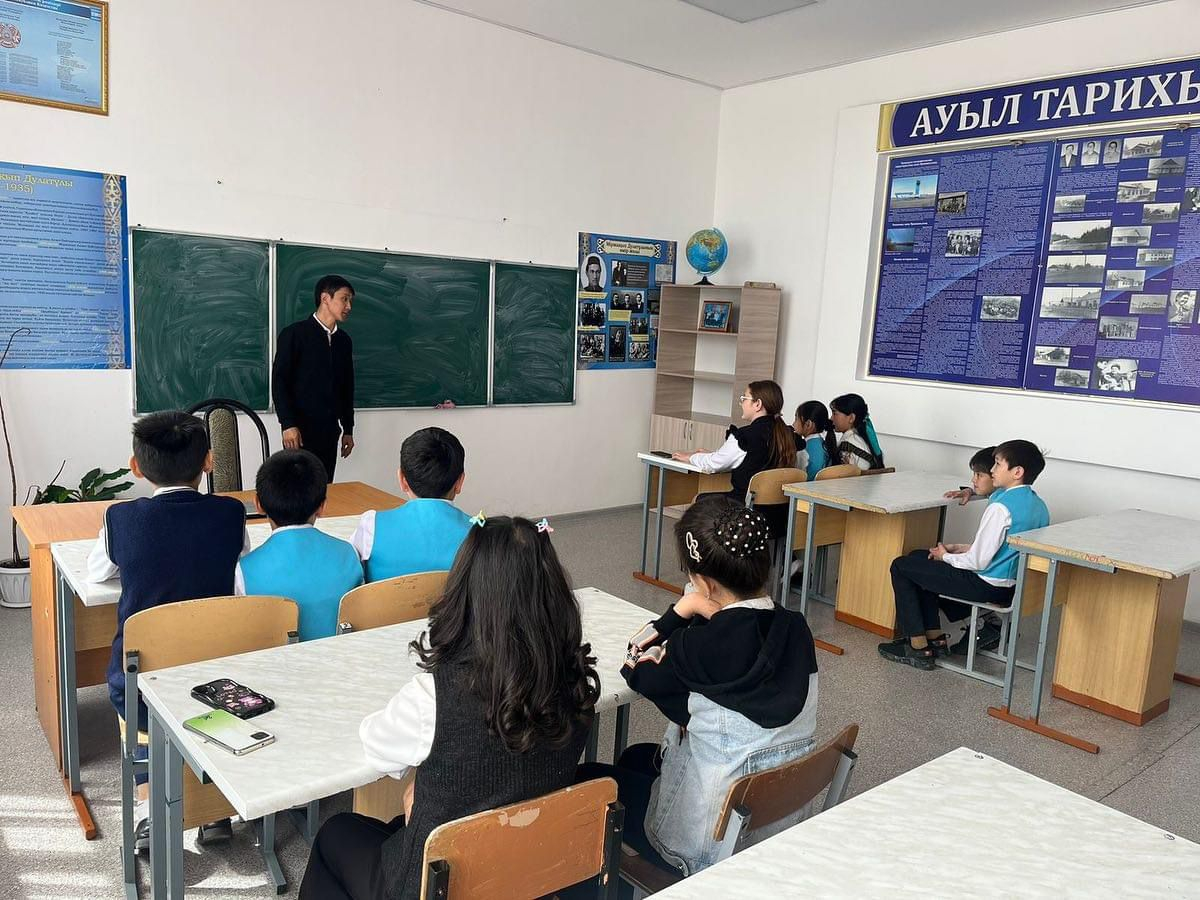 М.Дулатұлы атындағы ЖББ мектебінде 8-10 сыныптар арасында тарих пәнінің мұғалімі Жанат Арман “Ерлігім-елім үшін” атты тәрбие сағатын өткізді. Сабақ барысында Ұлы Отан соғысы батырларының…