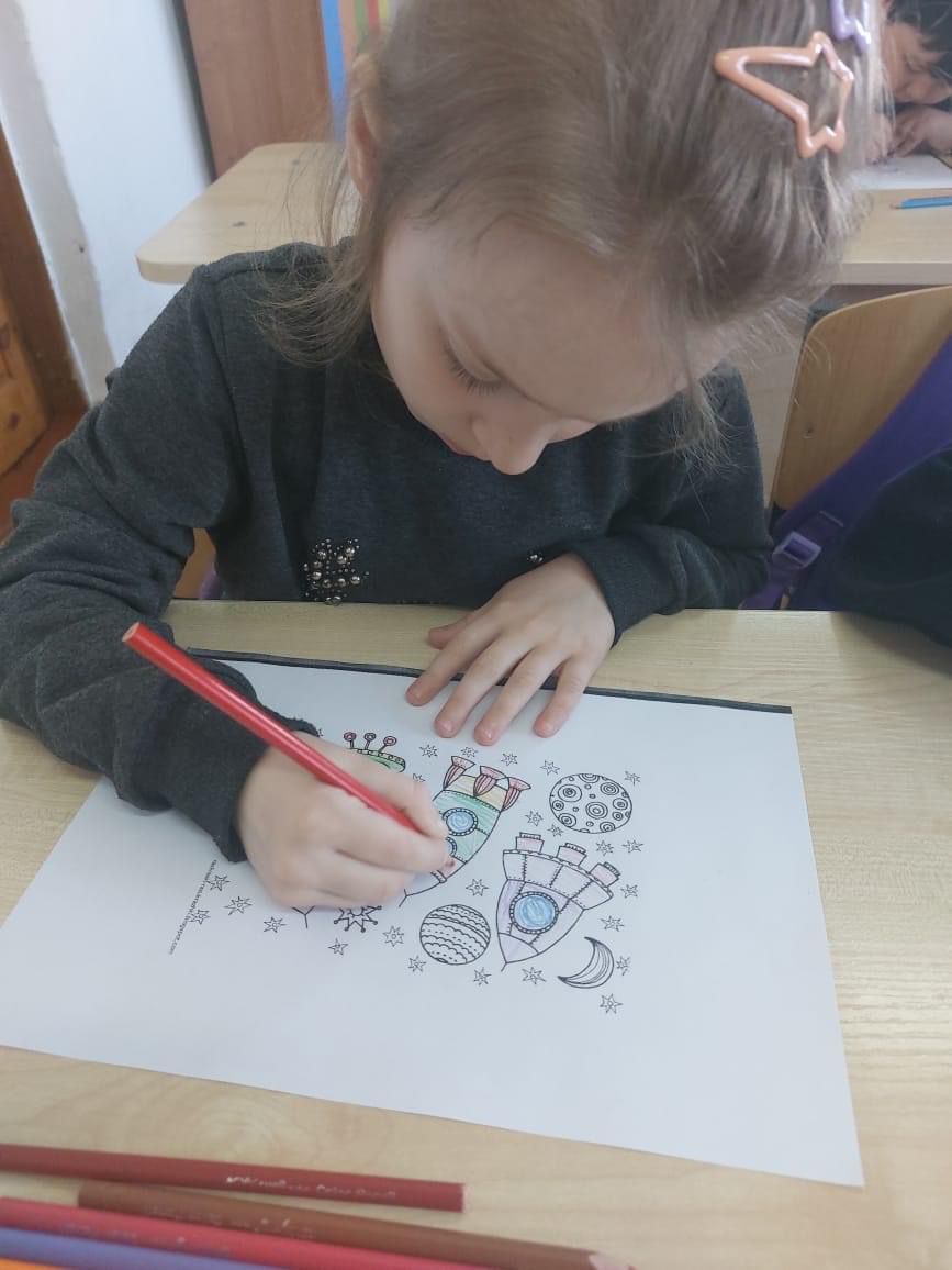 12 сәуір «Ғылым және технология» жаратылыстану-ғылыми сауаттылық апталығының бесінші күні 1-4 сыныптармен «Болашақ ғаламшар» тақырыбында сурет байқауы өткізілді.