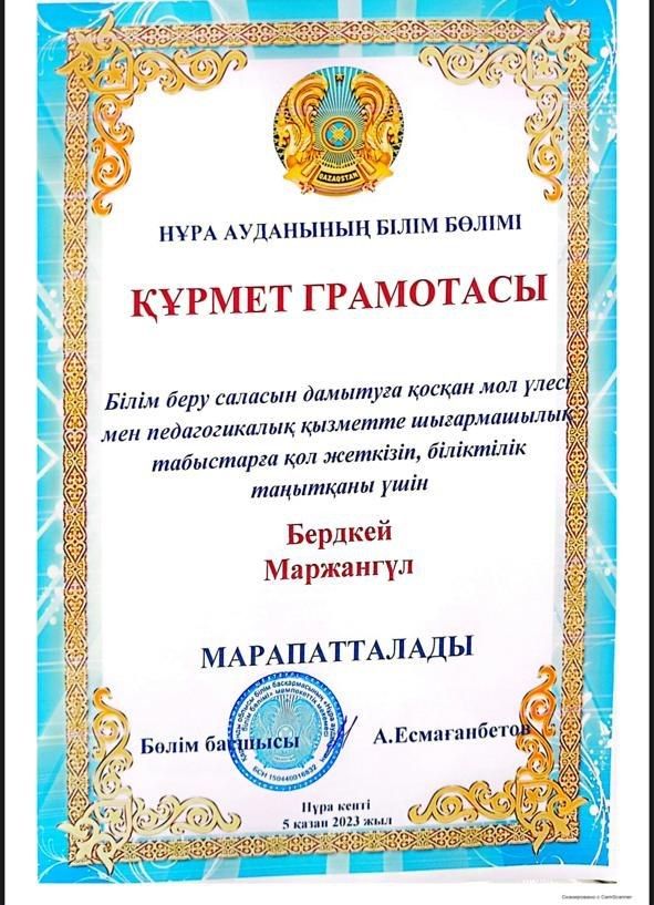 Ұстаздар күніне орай Міржақып Дулатұлы атындағы ЖББ мектебінің тарих пәнінің мұғалімі Тусупова Гульнар Амантаевна облыстық білім басқармасының Алғыс хатымен марапатталды. Сонымен қатар аудандық білі…