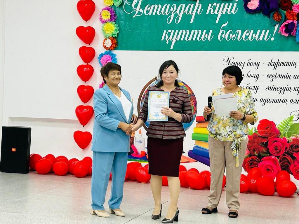 Ұстаздар күніне орай жас ұрпаққа білім мен тәрбие беруде қосқан үлесі, білім беру саласындағы көптеген жетістіктері мен шығармашылық еңбегі үшін Міржақып Дулатұлы атындағы ЖББ мектебінің мектеп дире…