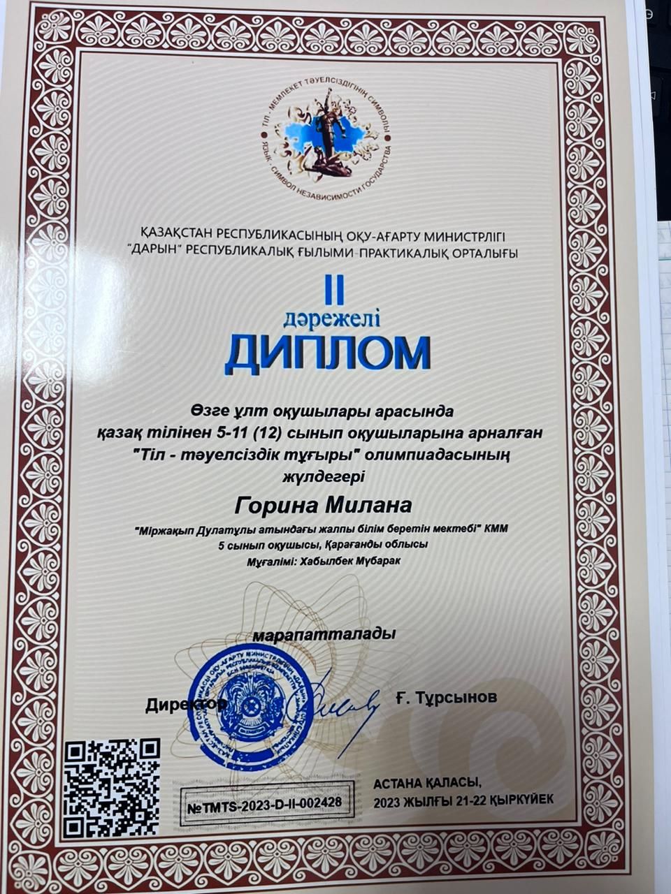 М. Дулатұлы атындағы ЖББ мектебінің оқушылары "Дарын" республикалық ғылыми-практикалық орталығының ұйымдастыруымен өзге ұлт оқушылары арасында қазақ тілі пәнінен 5-11 сынып оқу…