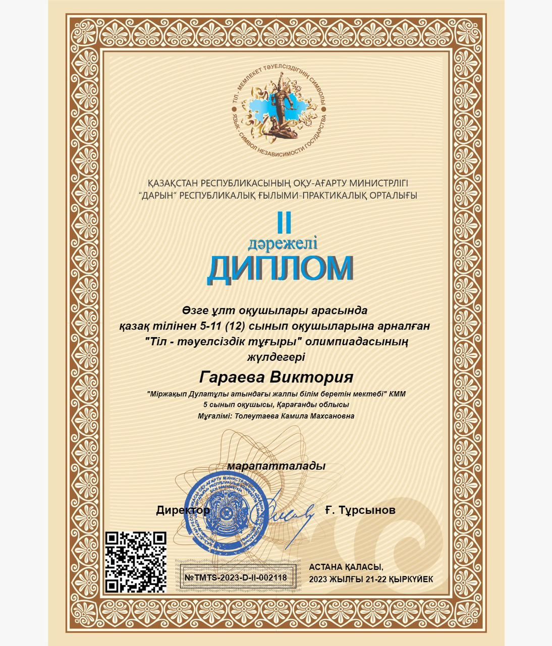 "Тіл-тәуелсіздік тұғыры" олимпиадасына қатысып, жүлделі орындарға ие болды