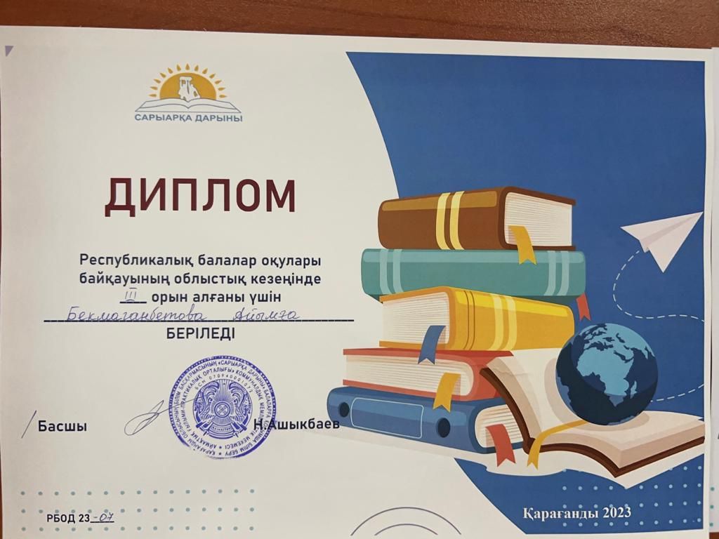 «Балалар әлемі» жобасы шеңберінде Республикалық балалар оқулары байқауынан ІІІ орын.
