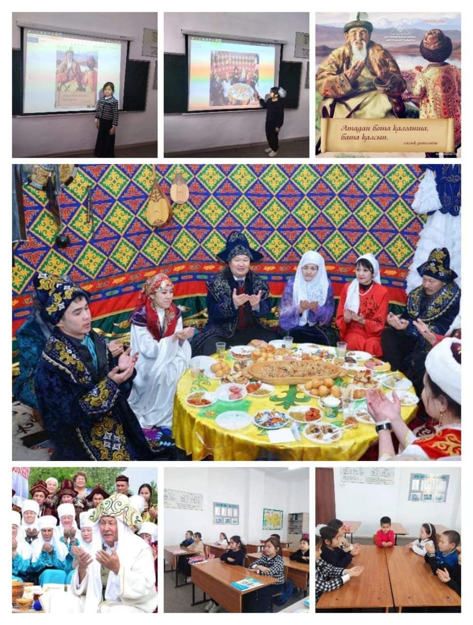 7 желтоқсан-"Ақсақалдар және бата беру күніне" арнап 1-10 сыныптары ауыл ақсақалдарын шақырып, батасын алса, кейбір сыныптар өздері бата жаттап, бата беріп, сынып сағаттарын өткізді. …