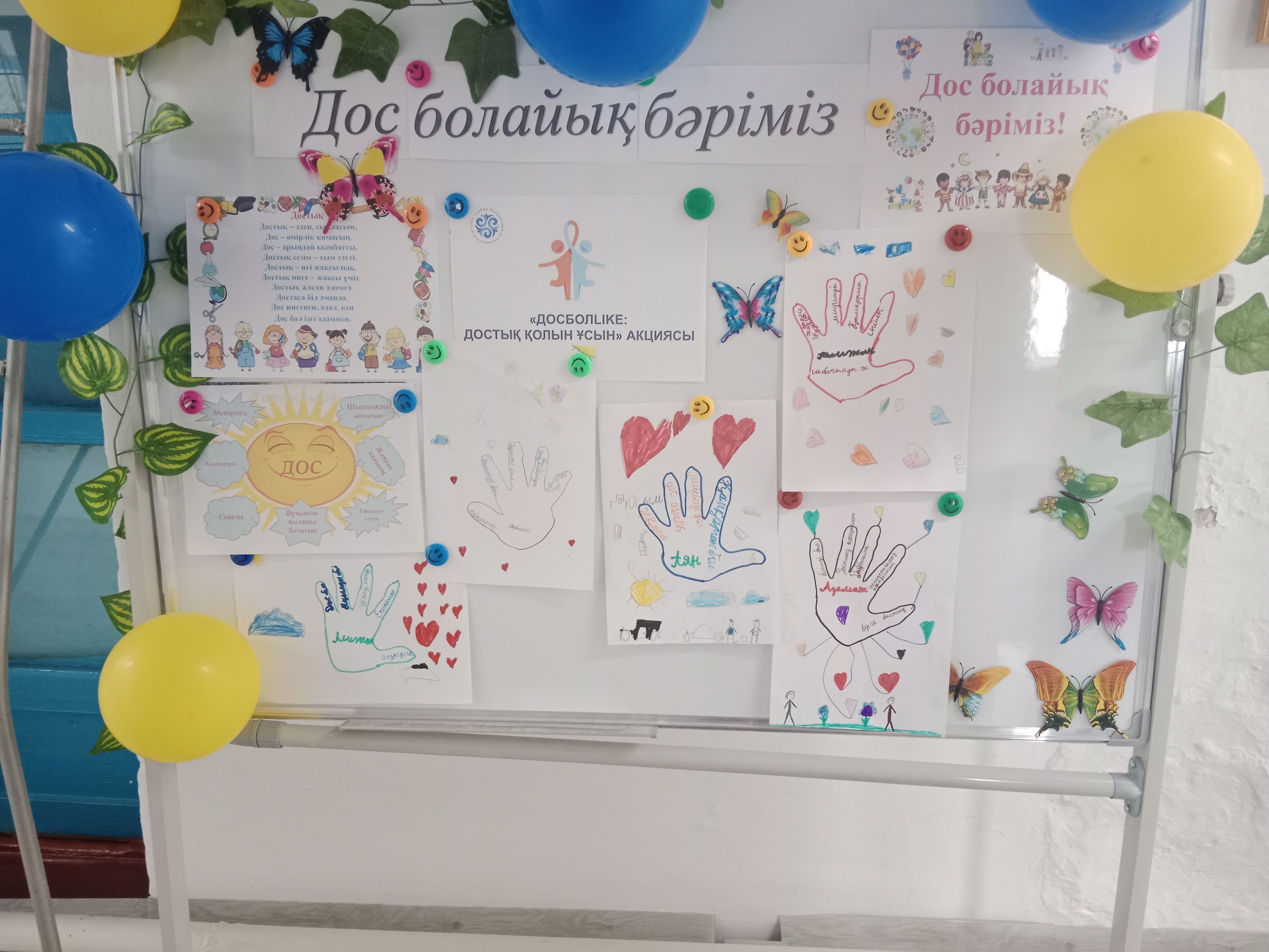 Ө. Тұрлыбеков атындағы БМ. Қаңтар айының 26-шы жұлдызында мектебімізде "ДОСБОЛLIKE" акциясы аясында оқушылар бір-бірлеріне тілектерін жазды.