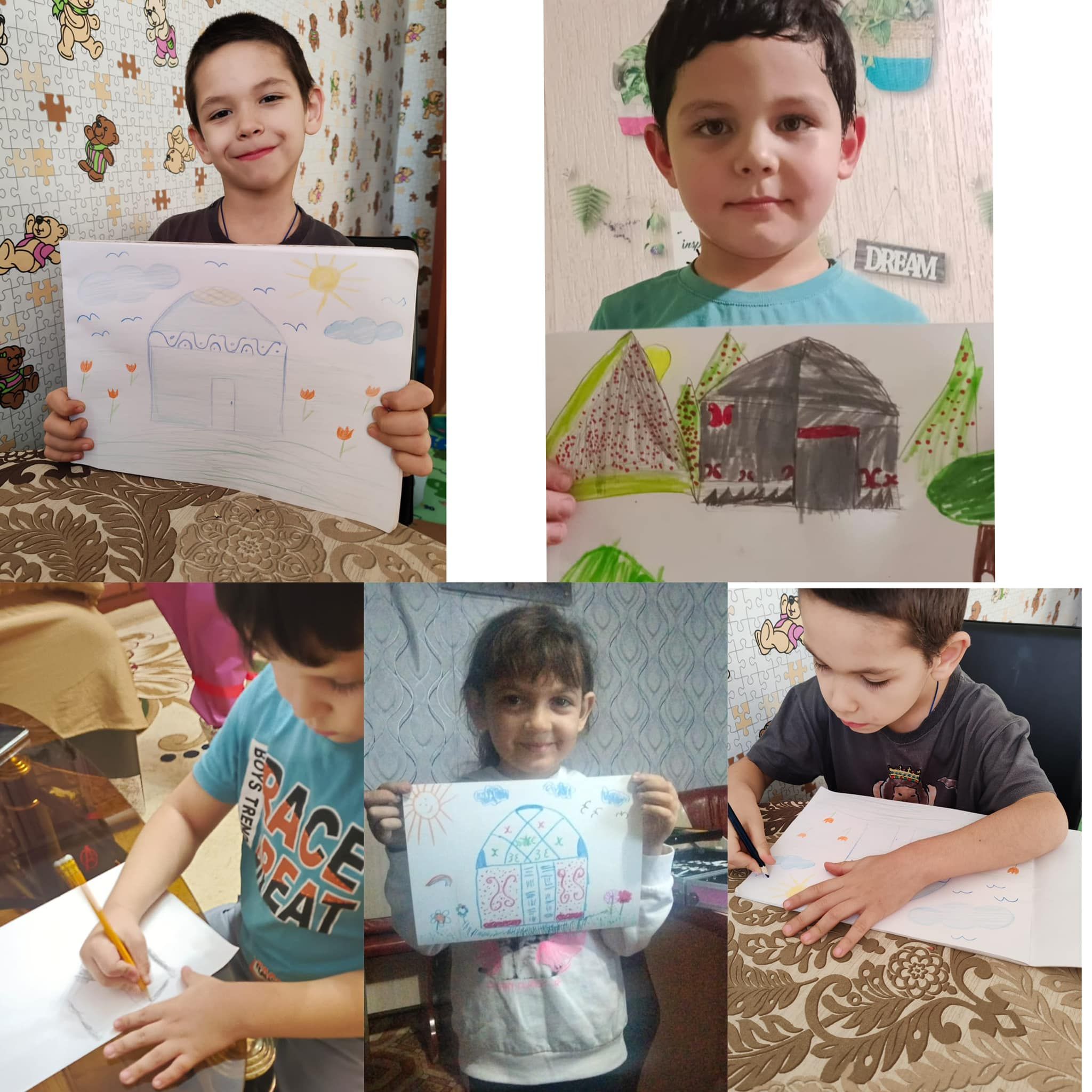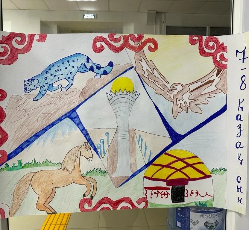 Второй день недели казахского языка, прошел в дистанционном формате, в связи с неблагоприятными погодными условиями. Дети совместно с родителями выполняли задания. По плану: - «Юрта…