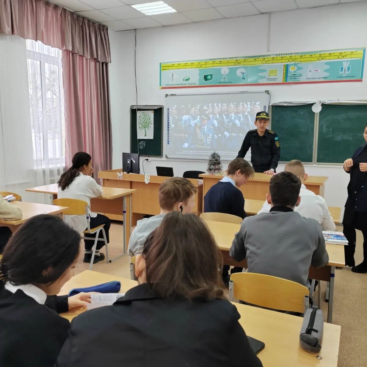 Кәсіби бағдар беру мақсатында Акишева А.Х. алғашқы әскери дайындық пәнінің мұғалімі Елтаев Т.Ж. бірлесіп, 10 қаңтар- ҚР Ұлттық ұлан күніне орай 9-11-сынып оқушыларымен патриот сағатын өткізді. Ұлт…