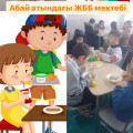Шұбаркөл ЖББ мектебінің асханасында 1-2 сыныбының ыстық тамақ ішу сәті.