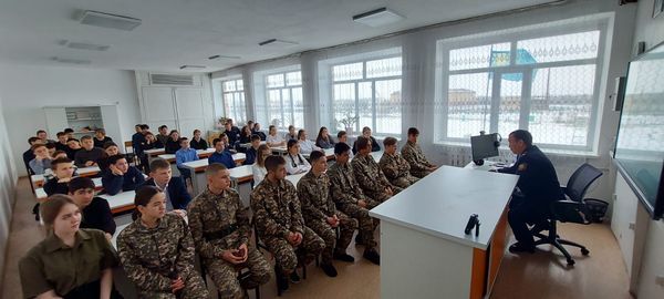Қарағанды облысы білім басқармасының Осакаров ауданының білім бөлімінің "№ 12 тірек мектебі ( ресурстық орталығы) " КММ-де Осакаров ауданының ББ инспекторы полиция майоры М. К. Курамысов м…