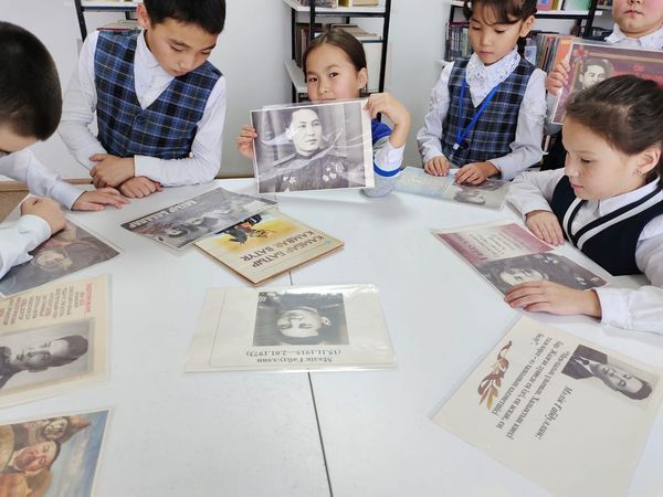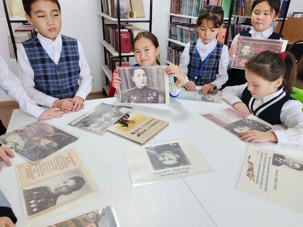 Қарағанды облысы білім басқармасының Осакаров ауданының білім беру бөлімінің «No12 Батырлар мектебі (ОМ)» КММ кітапханасының оқу залында «Батырлар күніне» арналған көрмеге шо…