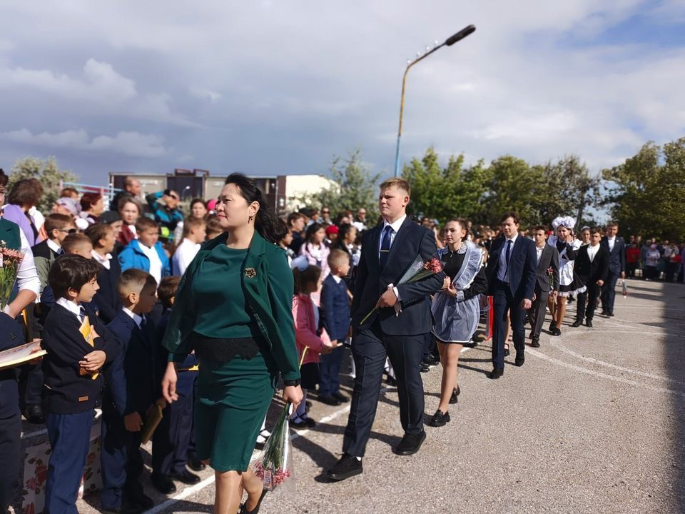 2023 жылғы 1 қыркүйекте Қарағанды облысы білім басқармасының Осакаров ауданы білім бөлімінің "№12 тірек мектебі ( ресурстық орталығы)" КММ оқушылары "Мектеп - мейірбандық мекені&qu…