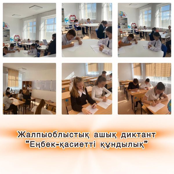 9 қыркүйек күні «Еңбек – қасиетті құндылық» тақырыбында облыстық ашық диктант өткізілді. Диктант жазуға 3-11 сыныптар мен қоса мектеп әкімшілігі, педагогтер қатысты.