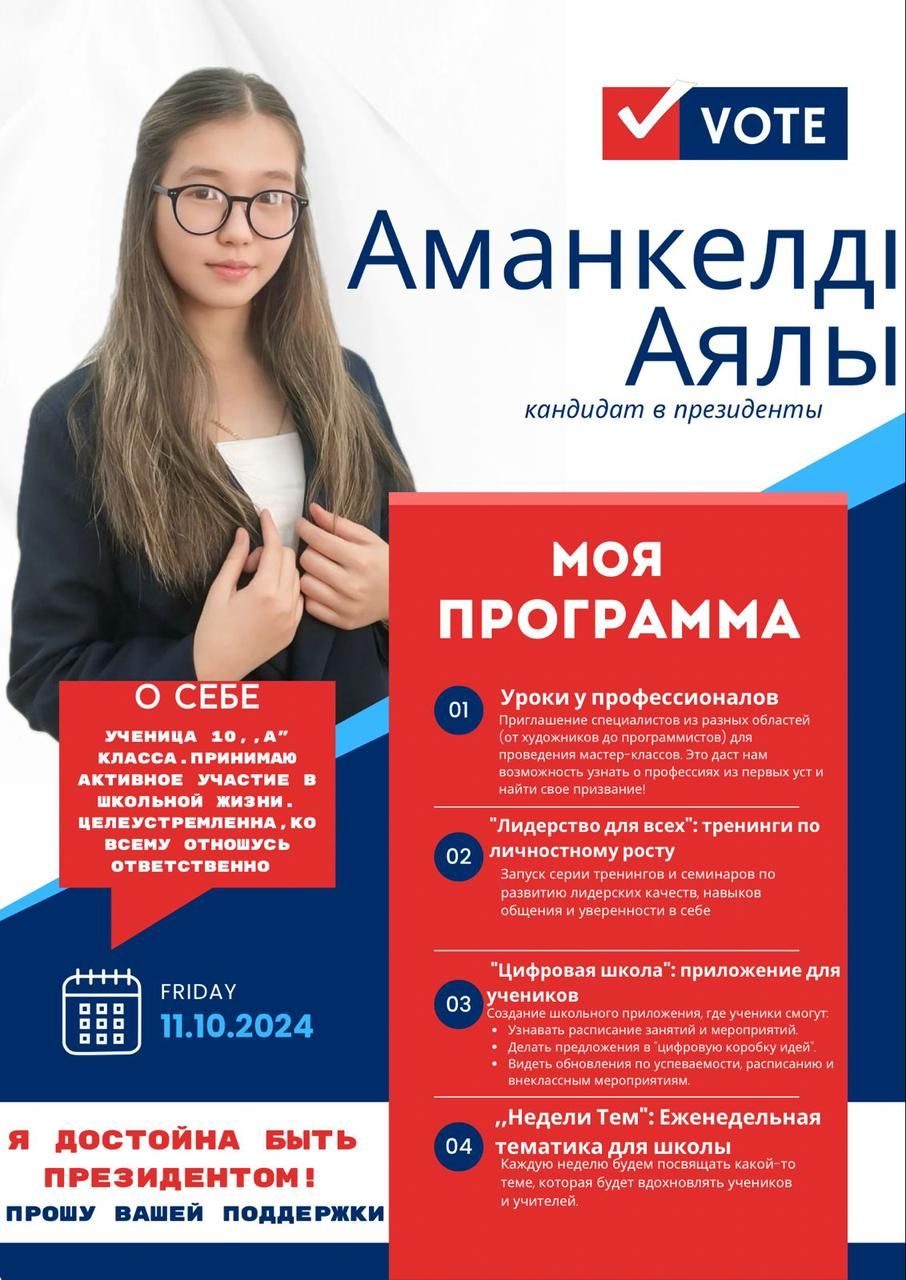 Мектеп парламентінің президенті лауазымына сайлау