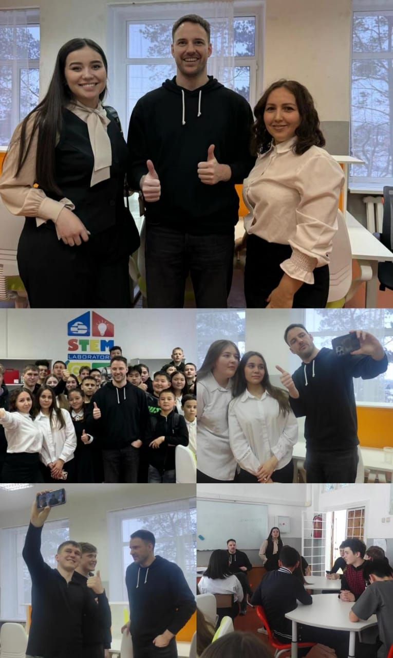 С целью мотивации учащихся к изучению английского языка, учителями Аралбаевой Р. М, Торбан Л.С и практикантом, Оспановой А. Е., был проведён English Speaking club с носителем языка. У нас в гостях п…