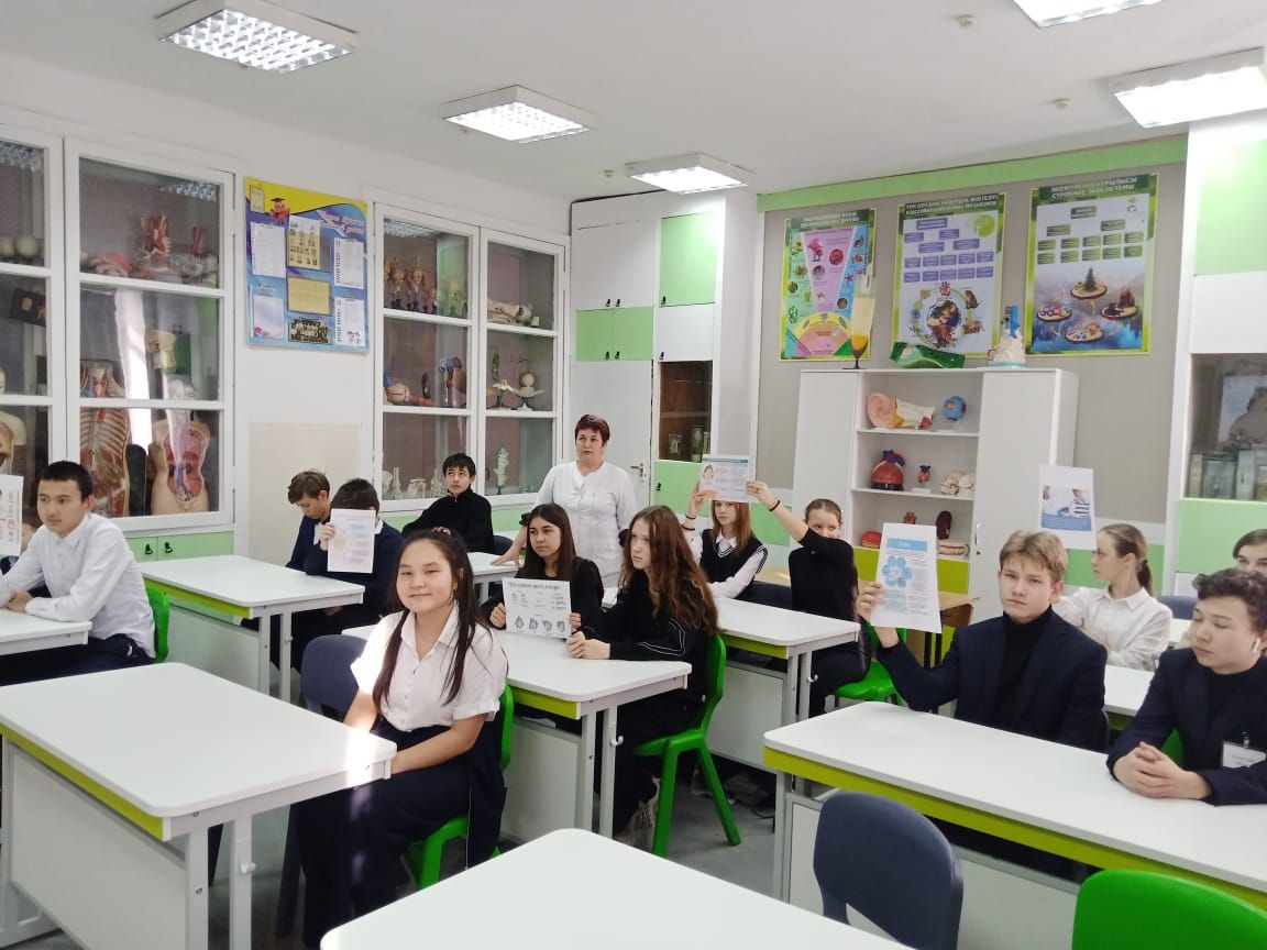 Осакаровка кентінің № 9 гимназиясының медицина қызметкері А.А.Леськова оқушылармен дұрыс рационалды және дұрыс тамақтану туралы әңгімелесті. Біздің әңгімеміздің дивизы «Кто долго жует,тот долг…