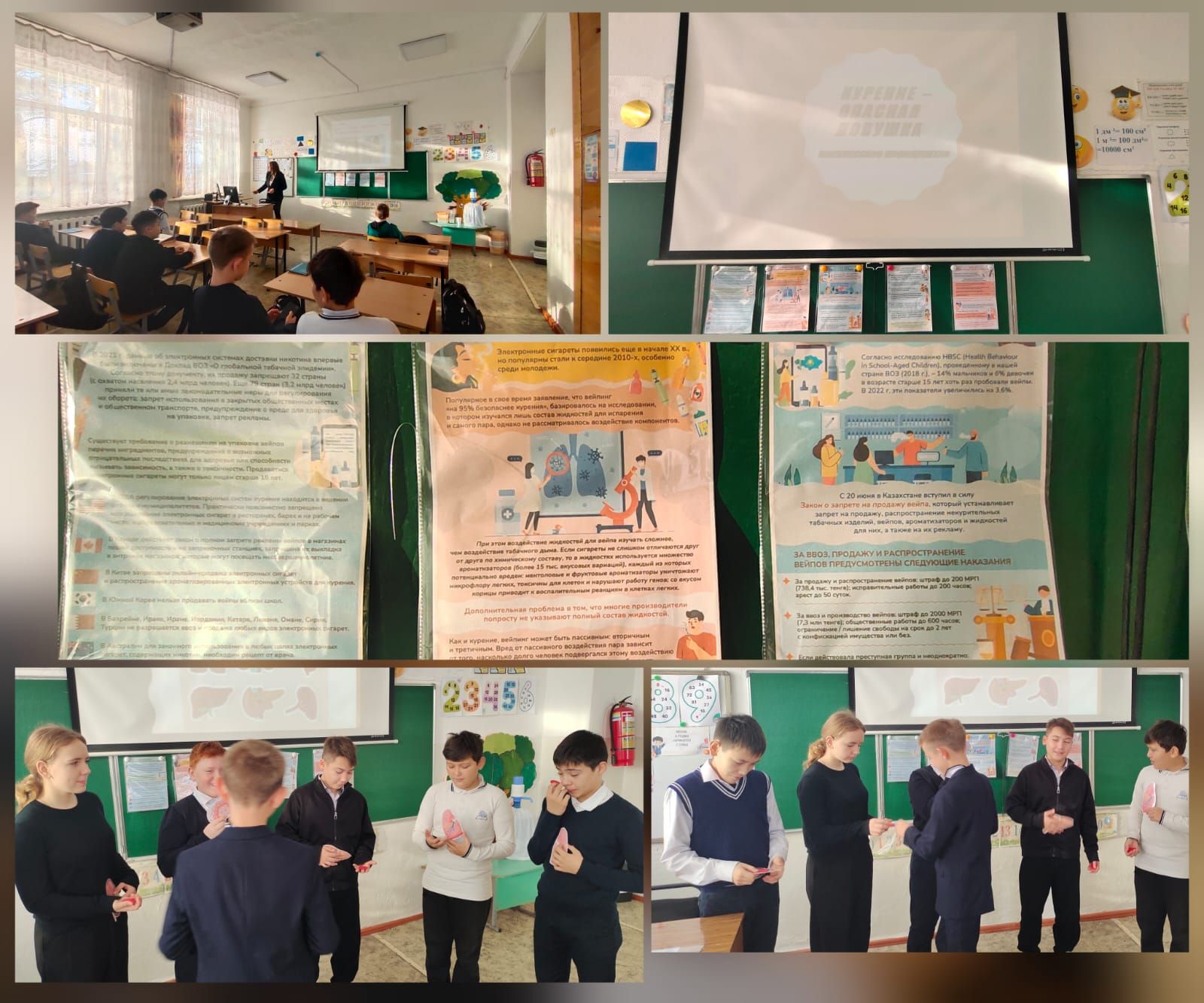 7-сынып оқушыларымен «Темекі шегудің зияны туралы» тақырыбында профилактикалық әңгіме өткізілді. Әңгімелесу мақсаты: темекі шегудің алдын алу, салауатты өмір салтына көзқарасын қалыптаст…
