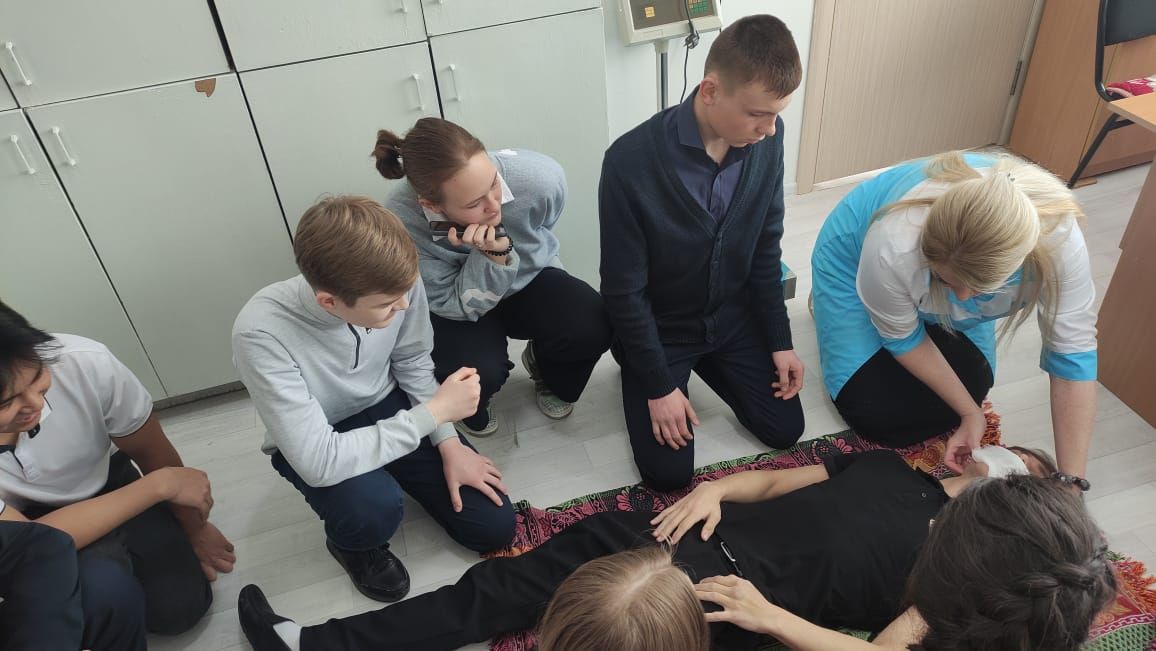 20.03.2024г.на базе КГУ "ОШ(Р/Ц) имени Абая" в рамках проекта «Шаг в медицину», медсестра школы Вайс Е.Г. с учениками мед.класса провели практическое занятие "Искусственно…
