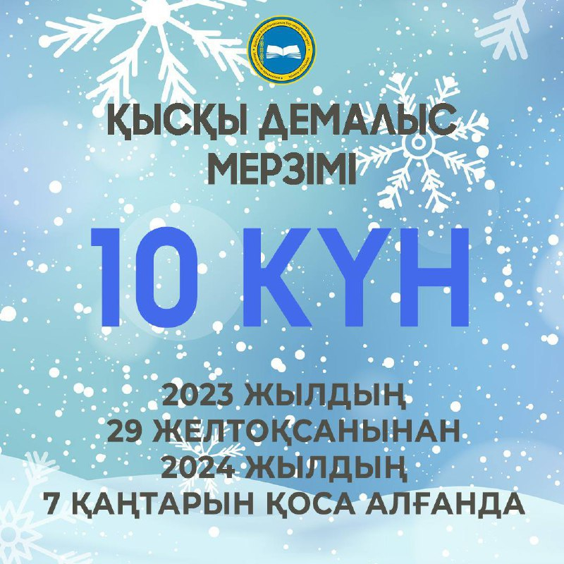 Қазақстандық мектептерде екінші тоқсан аяқталуда. Қысқы демалыс 2023 жылдың 29 желтоқсанынан 2024 жылдың 7 қаңтарын қоса алғанда 10 күнге созылады.