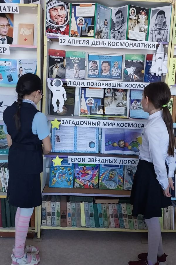 "N15 ЖББ" КММ мектеп кітапханасында оқырмандарға арналған "Ғарыштың жұмбақ әлемі" атты кітап көрмесі рәсімделді. Оқырмандардың назарына Ғарыш туралы, қазақстандық ғарышкерлер тур…