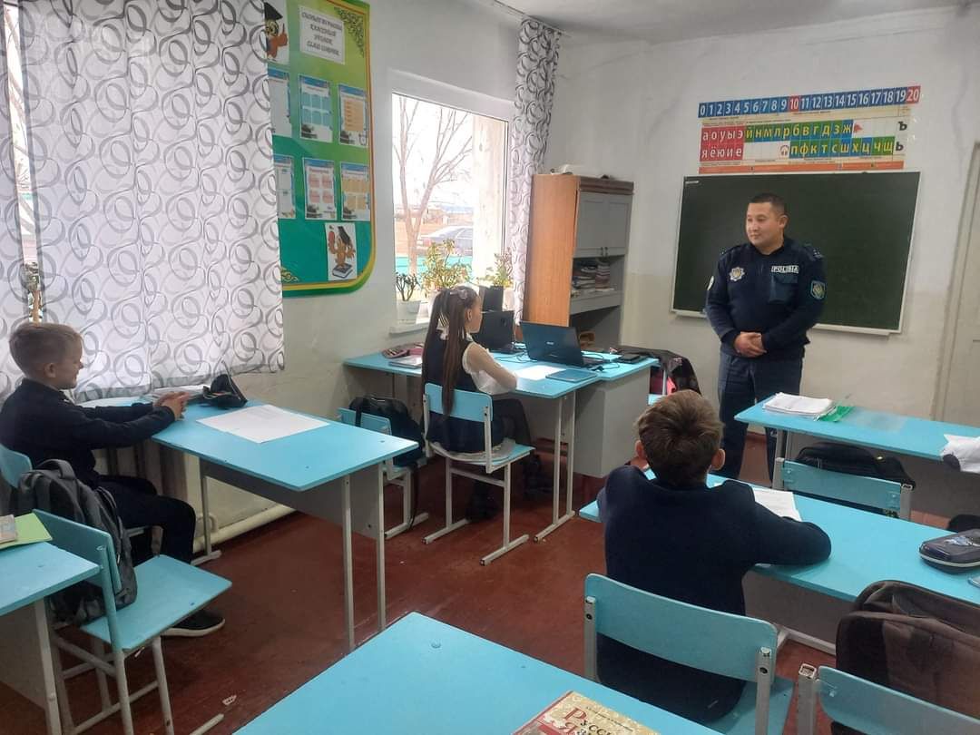 в КГУ "ОСШ №35" прошла беседа с участковым Ткановым Т.К. о вреде курения, употребления наркотических средст и половой неприкосновенности