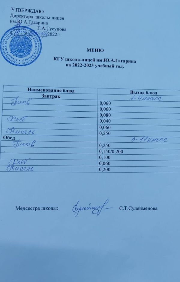 Тегін тамақтандыруды ұйымдастыру туралы бұйрық