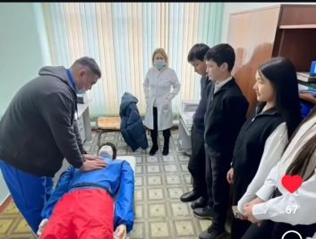Ю.А.Гагарин атындағы мектеп-лицейінде «Медицинаға қадам» жобасы аясында медицина қызметкерімен кездесу өтті. Кездесу барысында ол алғашқы медициналық көмек көрсетудің әдістерін көрнекі т…