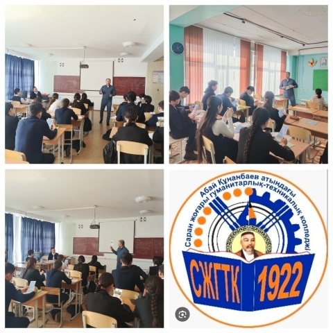 Ю.А.Гагарин атындағы мектеп-лицейінде "Абай Құнанбаев атындағы Саран жоғары гуманитарлық-техникалық колледжінің" өкілі Хайрулин И.М кәсіби бағдар беру мақсатында 9 сынып оқушыларымен кезде…