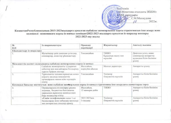 СЫБАЙЛАС ЖЕМҚОРЛЫҚҚА ҚАРСЫ ІС-ҚИМЫЛ ЖОСПАРЫ