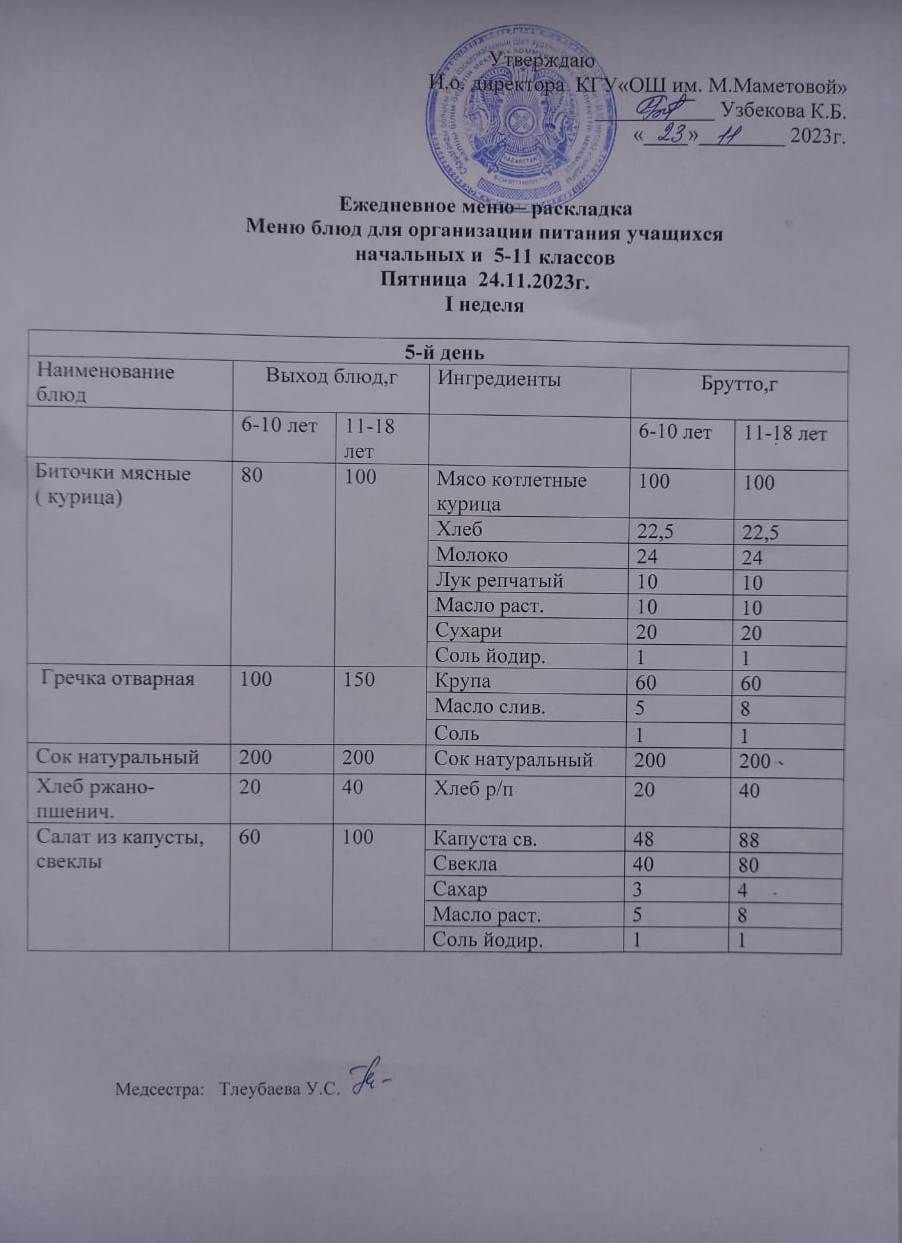 24.11.2023 КҮНІНЕ БАСТАУЫШ СЫНЫПТАР МЕН 5 – 11 СЫНЫПТЫҢ ӘЛЕУМЕТТІК ОСАЛ ТОП ОҚУШЫЛАРЫНЫҢ ТЕГІН ТАМАҚТАНУЫН ҰЙЫМДАСТЫРУҒА АРНАЛҒАН АС МӘЗІРІ