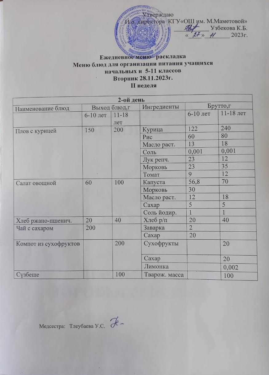 28.11.2023 КҮНІНЕ БАСТАУЫШ СЫНЫПТАР МЕН 5 – 11 СЫНЫПТЫҢ ӘЛЕУМЕТТІК ОСАЛ ТОП ОҚУШЫЛАРЫНЫҢ ТЕГІН ТАМАҚТАНУЫН ҰЙЫМДАСТЫРУҒА АРНАЛҒАН АС МӘЗІРІ