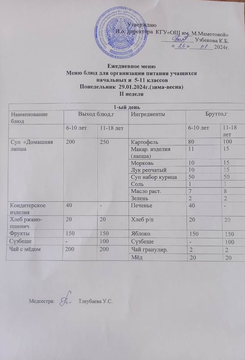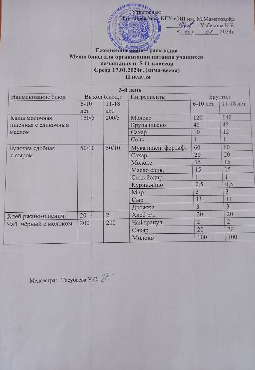 29.01.2024 БАСТАУЫШ СЫНЫПТАР МЕН 5 – 11 СЫНЫПТЫҢ ӘЛЕУМЕТТІК ОСАЛ ТОП ОҚУШЫЛАРЫНЫҢ ТЕГІН ТАМАҚТАНУЫН ҰЙЫМДАСТЫРУҒА АРНАЛҒАН АС МӘЗІРІ