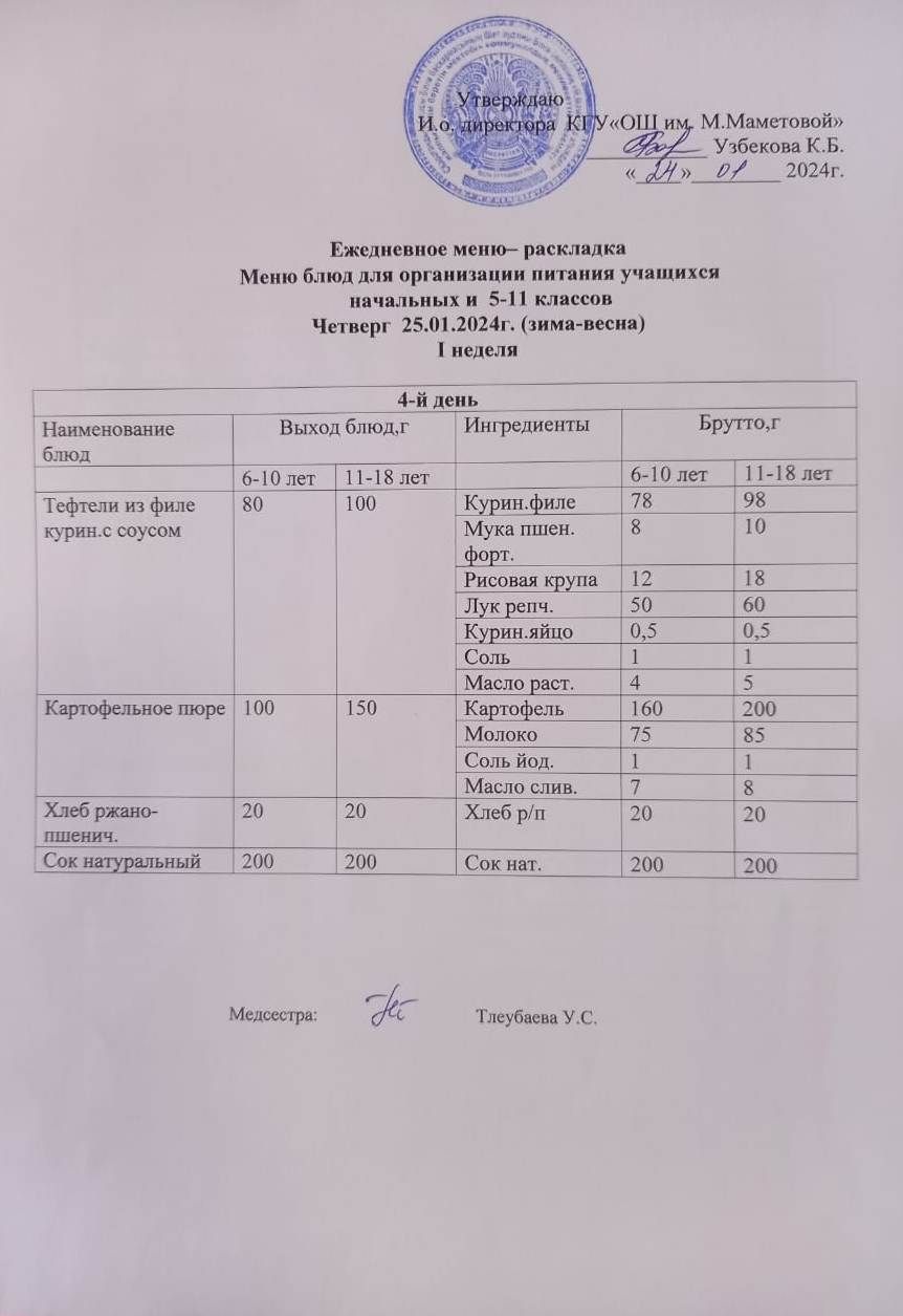 25.01.2024 БАСТАУЫШ СЫНЫПТАР МЕН 5 – 11 СЫНЫПТЫҢ ӘЛЕУМЕТТІК ОСАЛ ТОП ОҚУШЫЛАРЫНЫҢ ТЕГІН ТАМАҚТАНУЫН ҰЙЫМДАСТЫРУҒА АРНАЛҒАН АС МӘЗІРІ