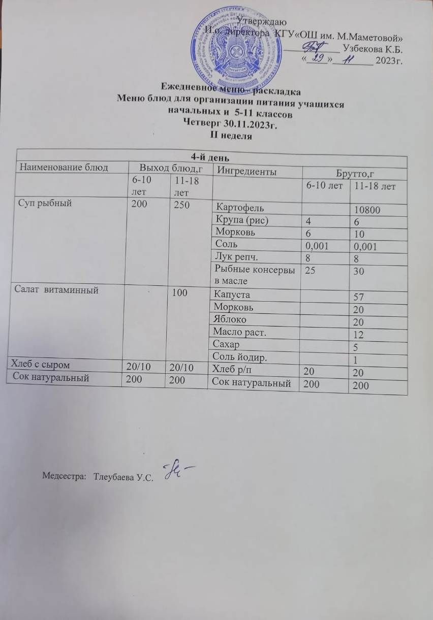 30.11.2023 БАСТАУЫШ СЫНЫПТАР МЕН 5 – 11 СЫНЫПТЫҢ ӘЛЕУМЕТТІК ОСАЛ ТОП ОҚУШЫЛАРЫНЫҢ ТЕГІН ТАМАҚТАНУЫН ҰЙЫМДАСТЫРУҒА АРНАЛҒАН АС МӘЗІРІ